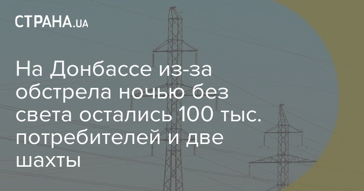 На Донбассе из-за обстрела ночью без света остались 100 тыс. потребителей и две шахты