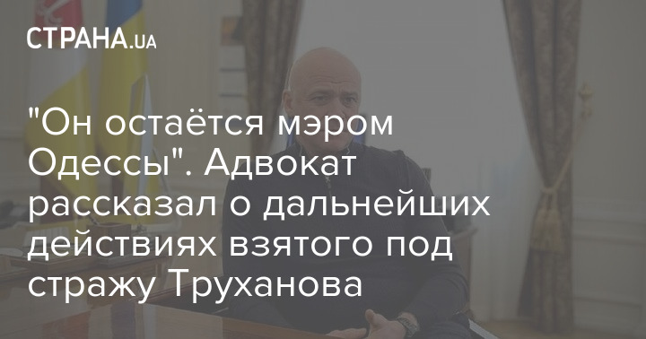 Александр Лысак, адвокат Геннадия Труханова, которого сегодня взяли под стражу, в комментарии "Стране" заявил, что его подзащитный остаётся мэром Одессы и выйдет из тюрьмы либо по решению апелляции, либо после внесения залога.