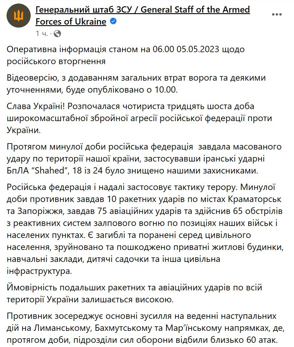 Война в Украине продолжается уже 436-й день. Мы следим за новостями 5 мая в своем онлайне.
