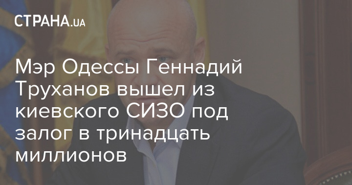Мэр Одессы Геннадий Труханов уже вышел из СИЗО под залог в размере 13,42 миллионов гривен.