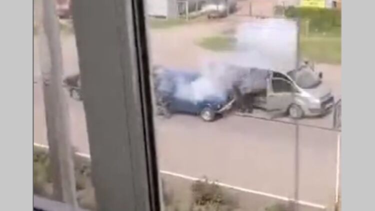 В результате самоподрыва водителя "Нивы" ранены росгвардейцы. Скриншот видео