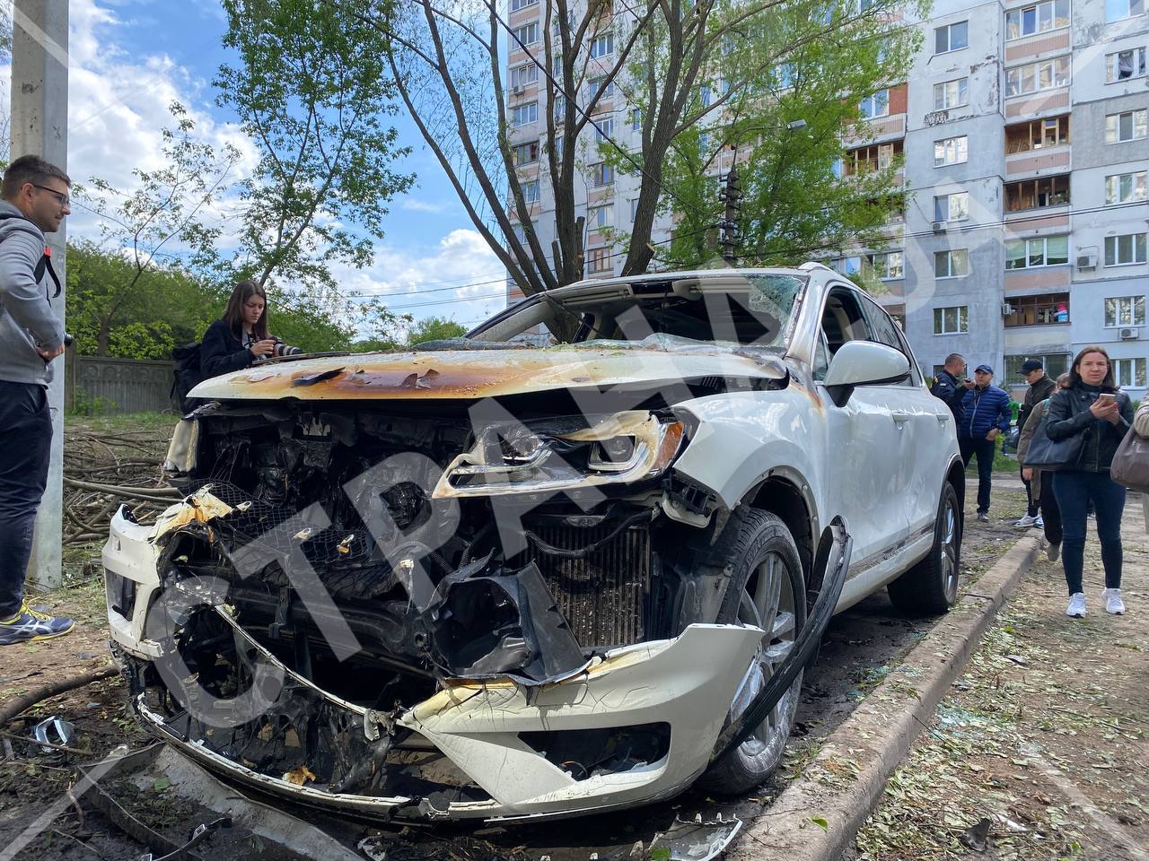 На месте падения дрона образовалась большая воронка. Всего повреждено 10 автомобилей. Одна машина сгорела полностью. Из местных жителей никто не пострадал.