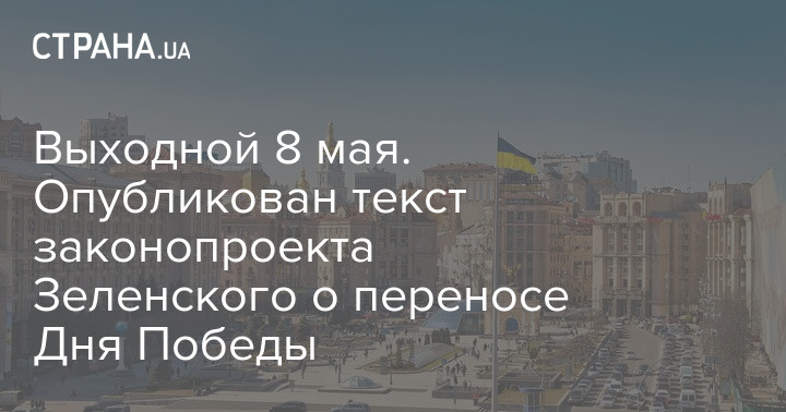 Опубликован текст законопроекта №9278 "О Дне памяти и победе над нацизмом во Второй мировой войне 1939-1945 годов". Это законопроект о переносе Дня Победы на 8 мая, внесенный в Верховную Раду президентом Украины Владимиром Зеленским.
