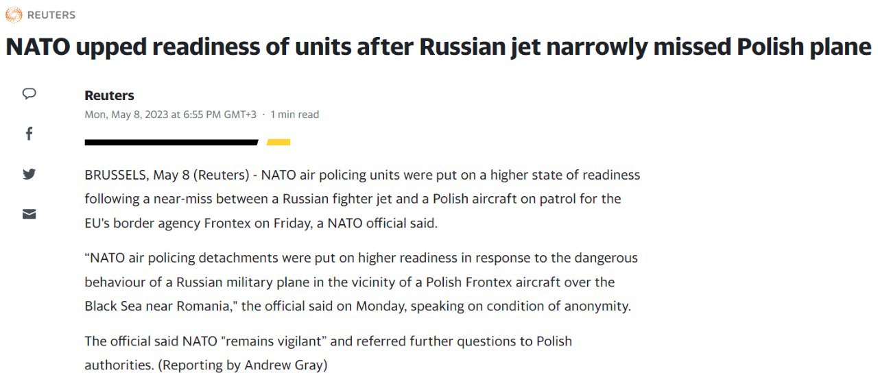 НАТО усиливает готовность воздушных сил в небе над Черным морем после инцидента с самолетами Польши и России