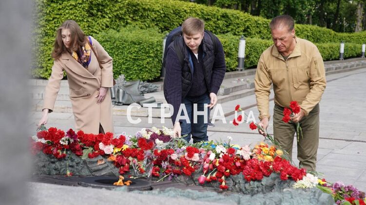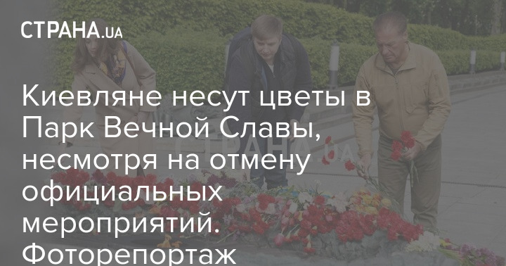 В Киеве сегодня, 9 мая, люди с утра несут цветы в Парк Славы к Вечному огню. Официальные мероприятия отменены в связи с военным положением, однако люди приходят в частном порядке, чтобы возложить цветы и почтить память погибших.