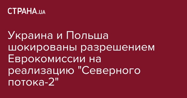 Украина и Польша шокированы разрешением Еврокомиссии на реализацию "Северного потока-2"