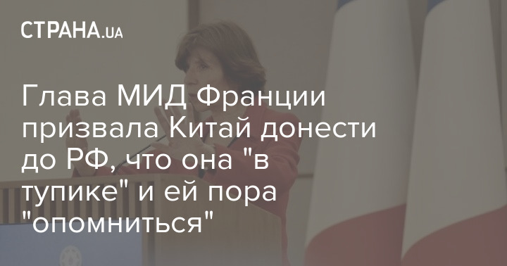 Глава МИД Франции призвала Китай донести до РФ, что она "в тупике" и ей пора "опомниться"