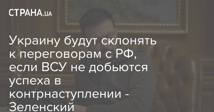 Президент Украины Владимир Зеленский считает, что если Украина не добьется значительного успеха в результате контрнаступления, ее будут склонять к переговорам с Россией.