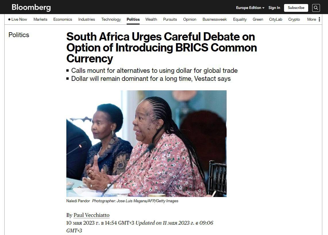 Пандор заявила, что дискуссия об общей валюте для блока была вызвана тем, что БРИКС и другие страны задаются вопросом, почему они не могут использовать в торговле свои собственные валюты вместо доллара США.