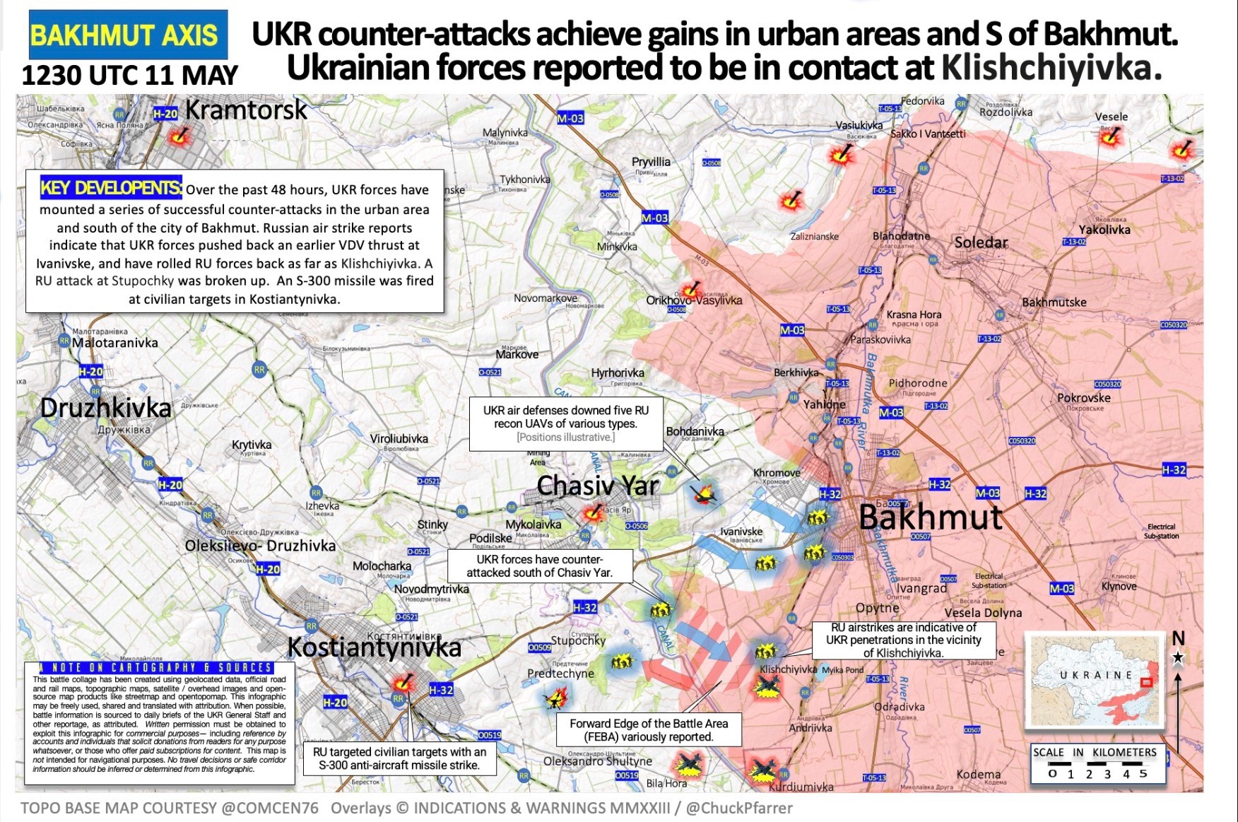 В то же время непонятно, насколько локальные контратаки ВСУ в Бахмуте с целью, возможно, окружить город (или хотя бы отодвинуть россиян от трасс снабжения), являются началом полномасштабного контрнаступления.