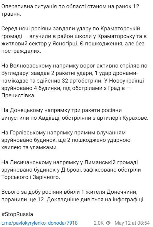 Минувшей ночью россияне обстреляли Донецкую область. Под удар попала Краматорская громада - район школы в Краматорске и жилищный сектор в Ясногорке (поселок под городом - Ред.)