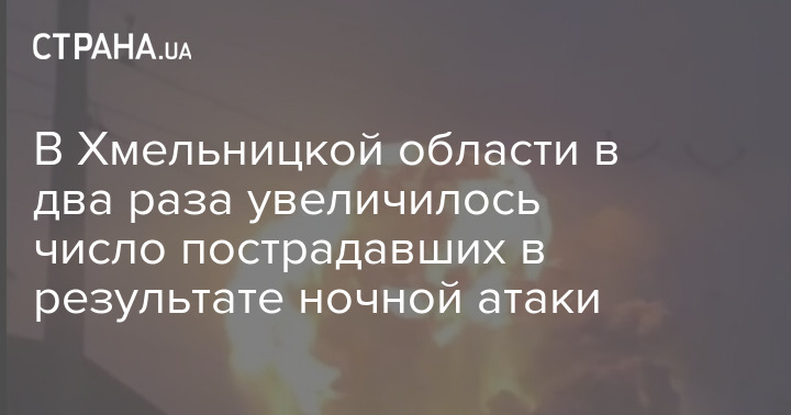 В результате удара дроном по объекту критической инфраструктуры Хмельницкой области пострадал 21 человек. Ранее сообщалось об 11 травмированных.