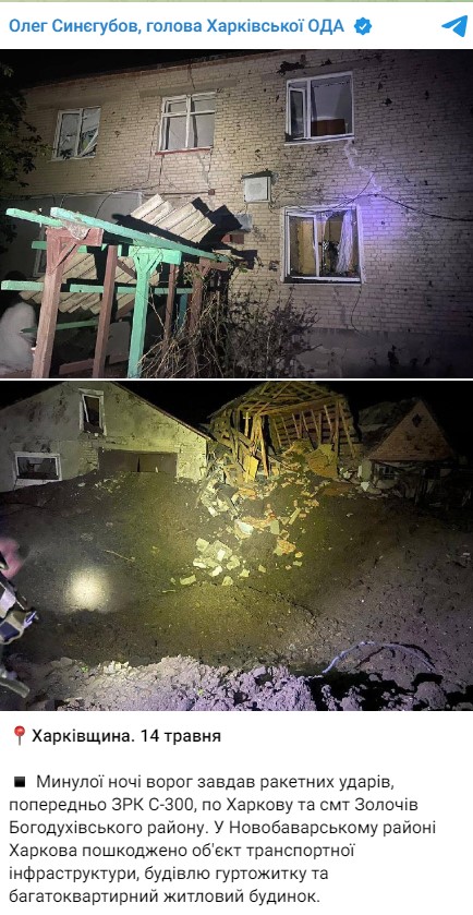 Глава Харьковской ОВА Олег Синегубов добавил, что в Харькове после вчерашнего обстрела поврежден объект транспортной инфраструктуры.