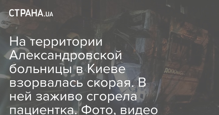 В субботу, 13 мая, на территории Александровской больницы в Киеве взорвалась и загорелась машина скорой помощи. В результате инцидента погибла женщина.