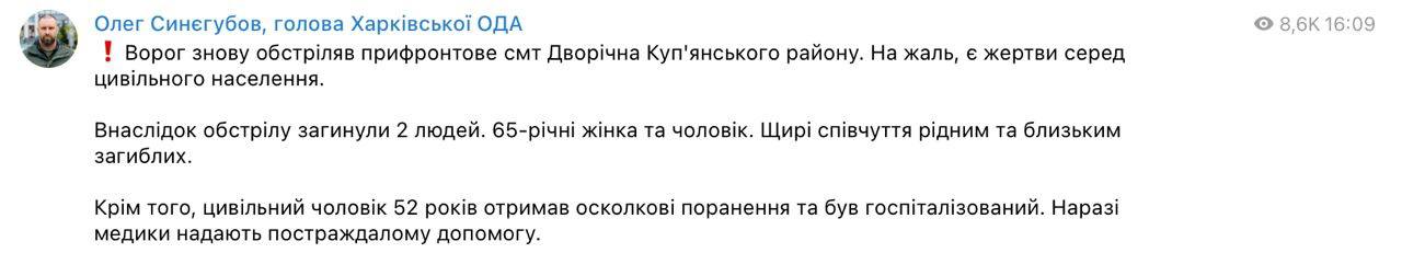 21.22 Сообщают об обстреле Купянска Харьковской области.