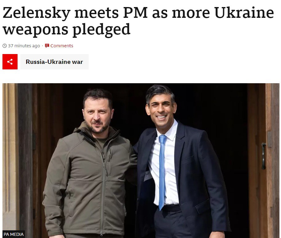 11.45 Зеленский прилетел в Британию и уже обнимается с премьером Риши Сунаком.