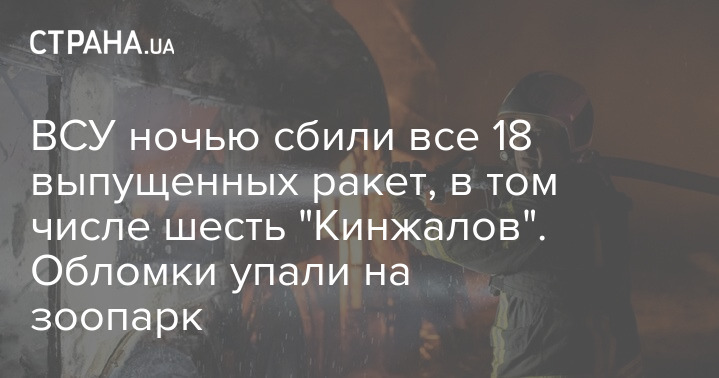 Сегодня ночью россияне атаковали Украину 18 ракетами разных типов: шесть "Кинжалов", девять "Калибров" и три ракеты комплексов "Искандер" и С-400. Все они были сбиты.