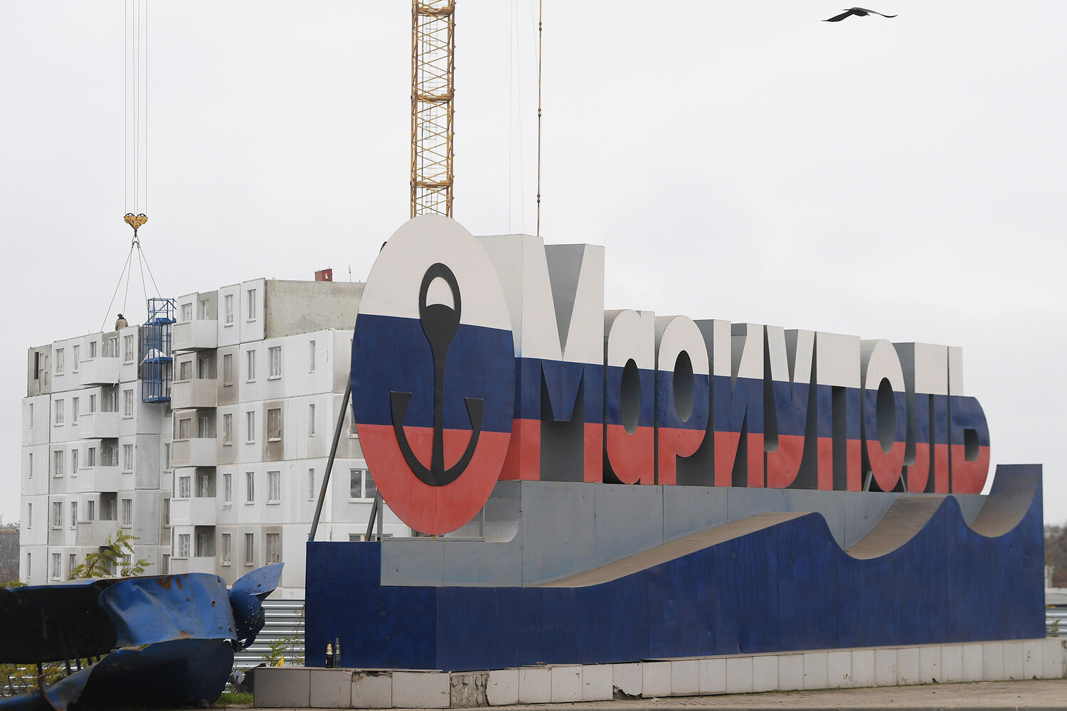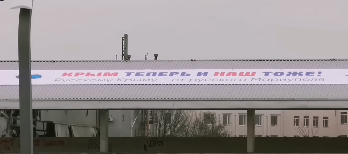То, что все же отстраивают россияне, громко рекламируется. Новый квартал, который во время поездки посещал Путин, называется ЖК Невский (тоже отсылка к Петербургу). На его фасаде нарисовали девушку в цветах триколора.