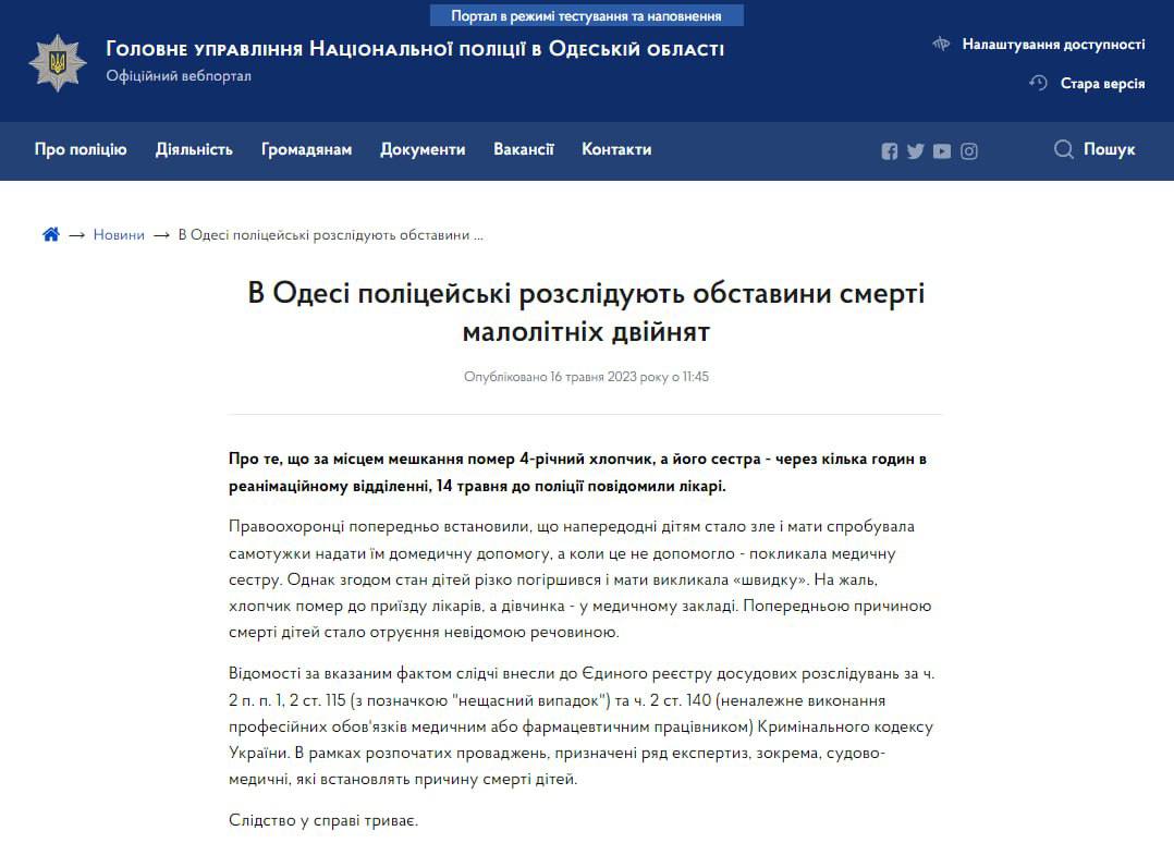 В МВД подтвердили гибель четырехлетних двойняшек в Одессе, о чем вчера писала "Страна".