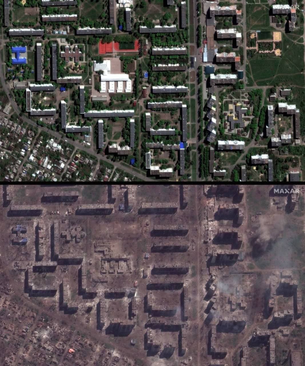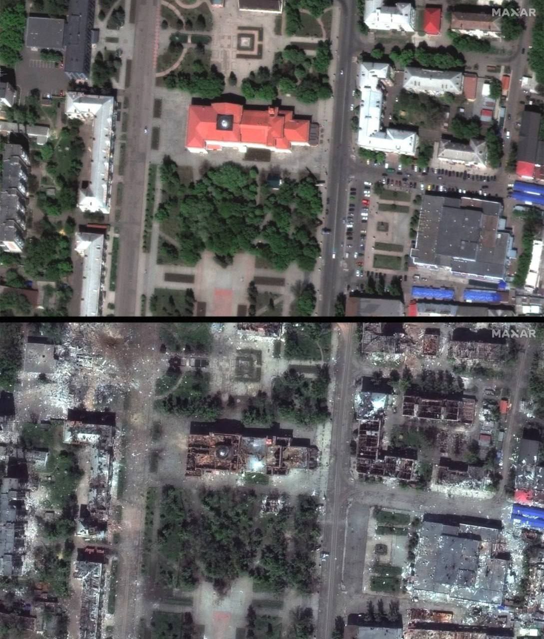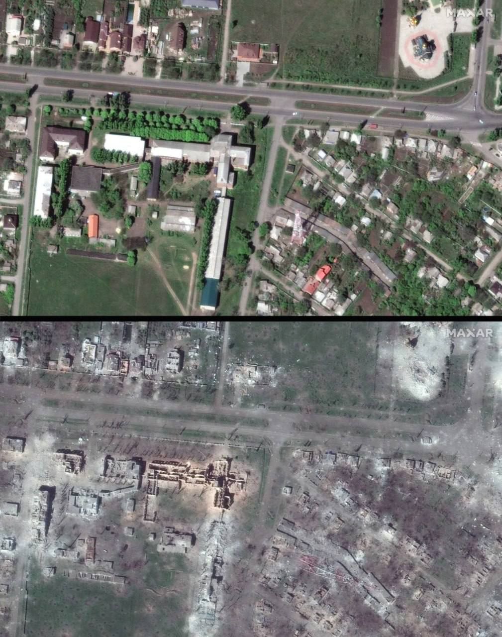 Снимки подробно показывают уровень разрушений. Компания Maxar заявила, что "районы жилых домов, школ, магазинов и другой инфраструктуры превратились в тлеющие обломки".