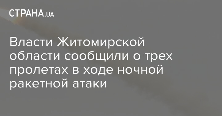 Власти Житомирской области сообщили о трех пролетах в ходе ночной ракетной атаки