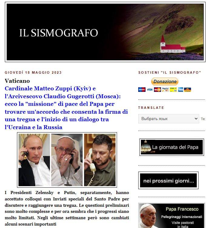 Сообщается, что в Москву мог бы в качестве папского спецпосланника отправиться нынешний префект декастерии по делам Восточных церквей архиепископ Клаудио Гуджеротти, а в Киев - глава Конференции итальянских епископов кардинал Маттео Мария Дзуппи.