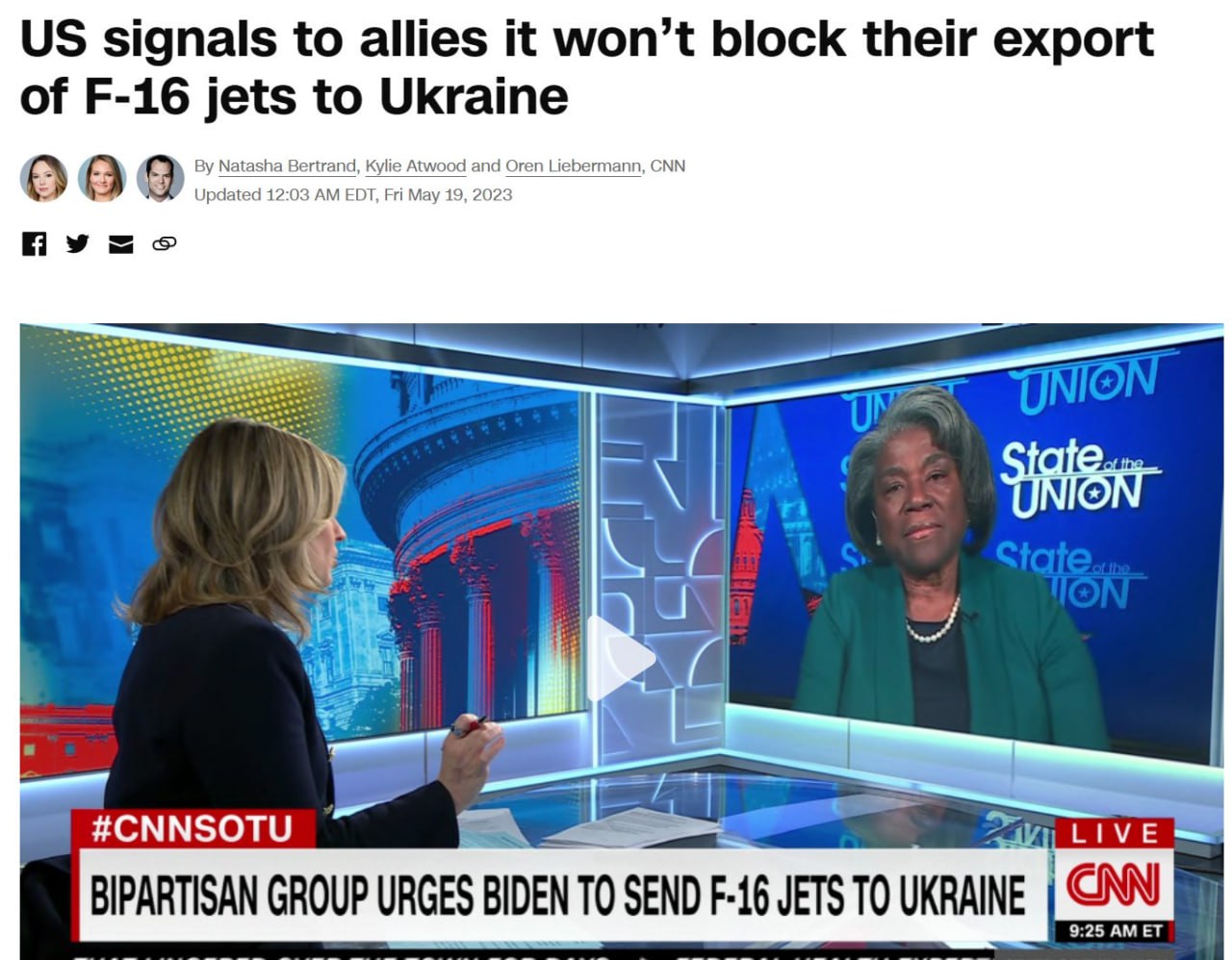 Администрация Джо Байдена в последние недели сигнализировала европейским союзникам, что США разрешат им экспортировать F-16 в Украину. Но пока ничего не известно о каких-либо официальных запросах союзников на экспорт.