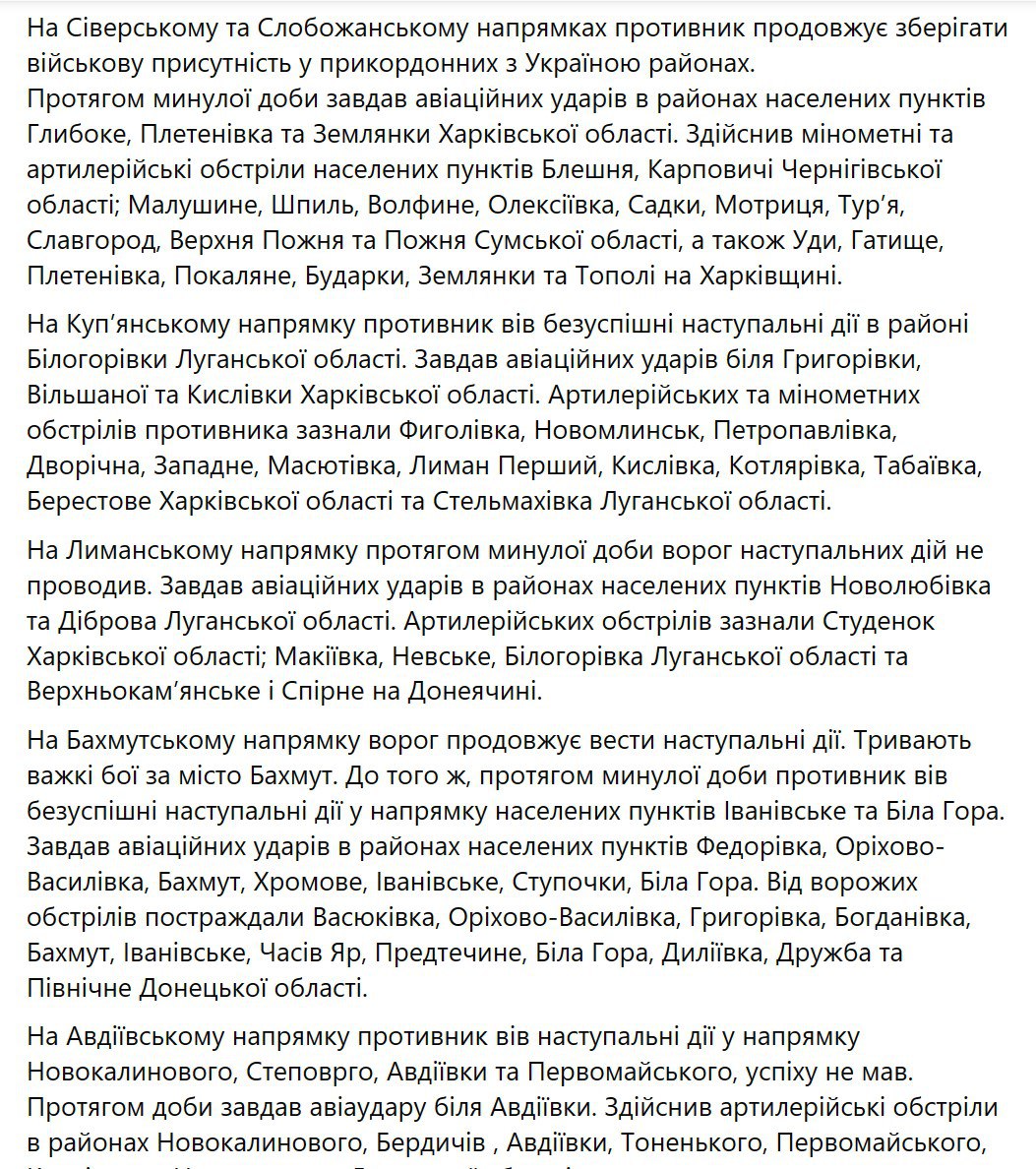 Генштаб ВСУ опубликовал новую сводку с фронта. Фото: Facebook