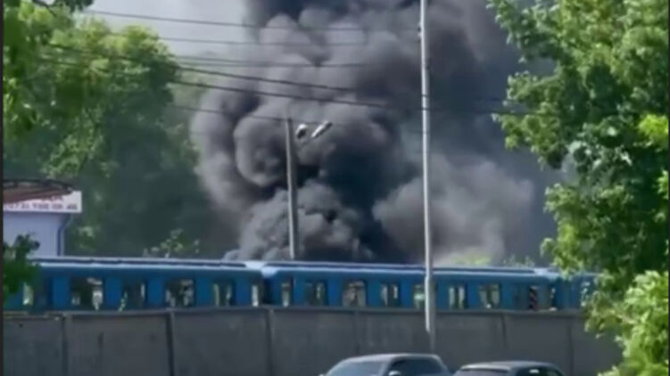 На видео с места пожара в небо поднимается густой чёрный дым. На других видео в телеграмм-каналах горит огромная куча мусора.