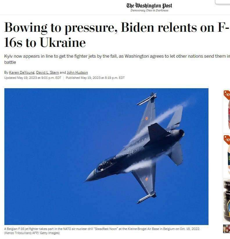 Ранее на брифинге в Хиросиме советник президента США Джо Байдена Джейк Салливан подробно остановился на теме предоставления Украине F-16. Судя по его заявлению, США не рассматривают эти истребители для Украины в ближайшей перспективе. И готовят их для "будущих" ВСУ.