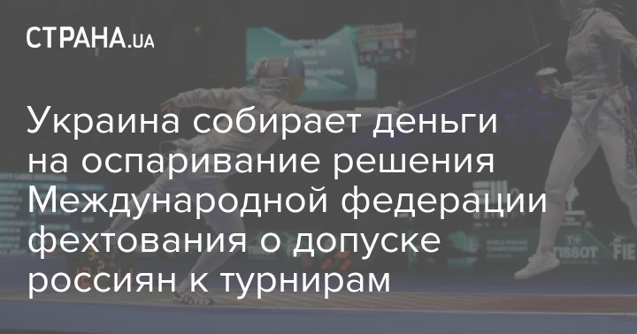 Федерация фехтования Украины (ФФУ) объявила о сборе средств на обжалование решений Международной федерации фехтования (FIE) о допуске россиян и белорусов к международным соревнованиям. ФФУ хочет обжаловать решения FIE в Спортивном арбитражном суде (CAS) и Окружном суде Лозанны.