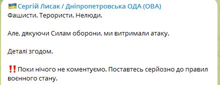 Он написал, что благодаря Силам обороны атаку выдержали и пообещал детали позже.