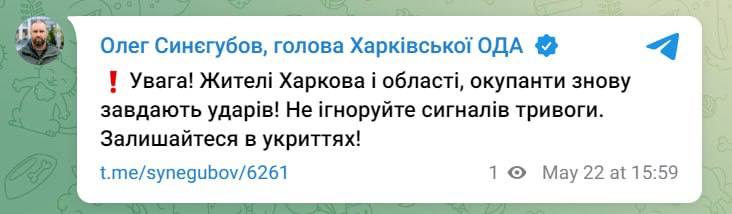 Воздушная тревога в Украине вечером 22 мая 2023 года