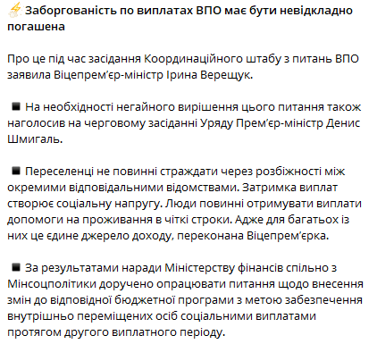 Напомним, ВПЛ жаловались на эту проблему еще с февраля. Как писала "Страна", Верещук обещала, что переселенцы получат выплаты, которые задерживались