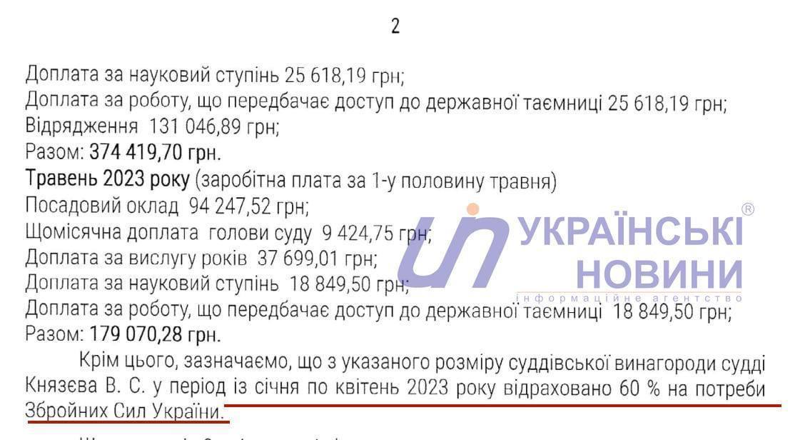 Верховный суд утверждает, что Князев 60% зарплаты перечислил на нужды Вооруженных сил Украины (ВСУ).