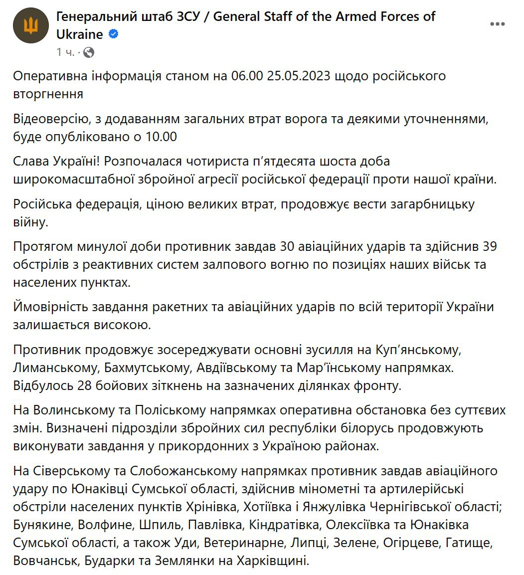 Война в Украине идет уже 456-й день. Мы следим за новостями 25 мая в своем онлайне.