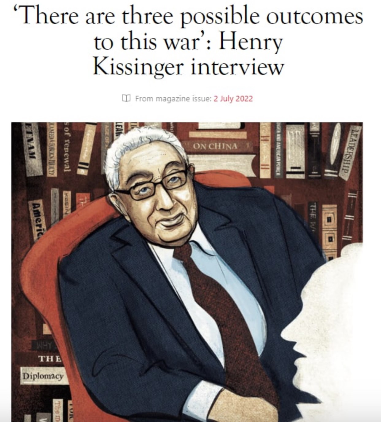 В статье под названием "Как избежать новой мировой войны" в британском еженедельнике Spectator он заявил о поворотной точке в войне в Украине, которой нужно воспользоваться, чтобы достичь урегулирования путем переговоров и избежать эскалации, чреватой глобальной катастрофой.