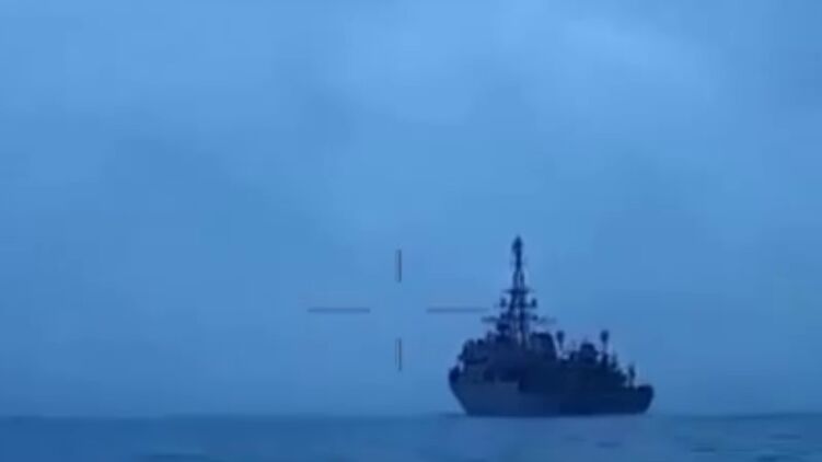 В Сети опубликовали видео, как утверждается, поражения российского разведывательного корабля "Иван Хурс" у берегов Турции украинским дроном-катером.
