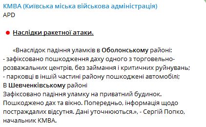 11.10 Глава Днепропетровской ОВА Лысак пишет, что удар по Днепру пришелся по медучреждению.