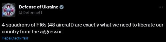 По словам генерала, "в будущем у F-16 есть своя роль". Но "потребуется значительное время, чтобы создать (в Украине - Ред.) военно-воздушные силы того размера, размаха и масштаба, которые необходимы".
