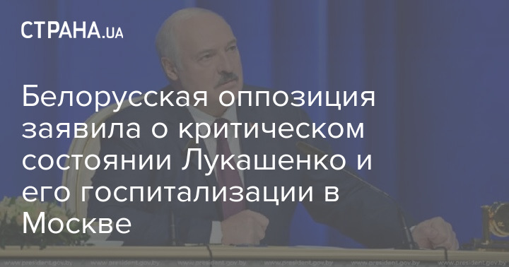 Белорусская оппозиция заявила, что президент Беларуси Александр Лукашенко серьезно болен и госпитализирован в Москве. Один из представителей оппозиции, несостоявшийся кандидат в президенты Валерий Цепкало, сказал, что глава государства находится "в критическом состоянии".