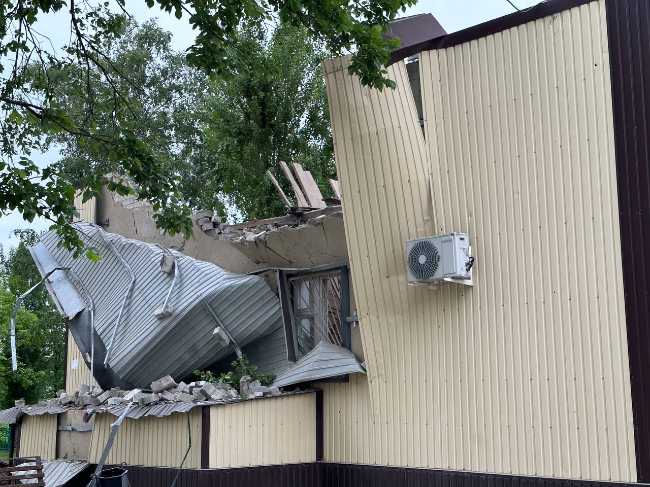 22.38 Фото последствий обстрела пункта временного размещения в Белгородской области РФ публикуют местные паблики.