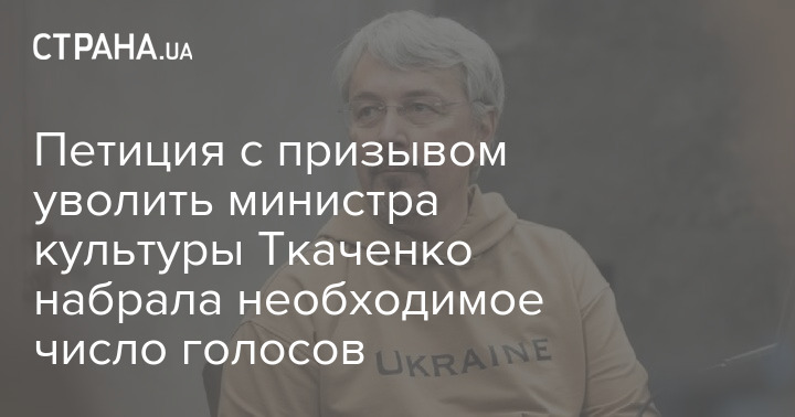 Петиция с призывом уволить министра культуры Александра Ткаченко на сайте правительства набрала необходимые 25 тысяч голосов.