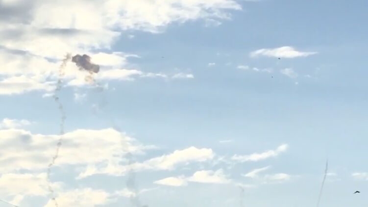 Местные жители, гуляющие по берегу моря, снимают видео следов работы ПВО в небе. Следов очень много.