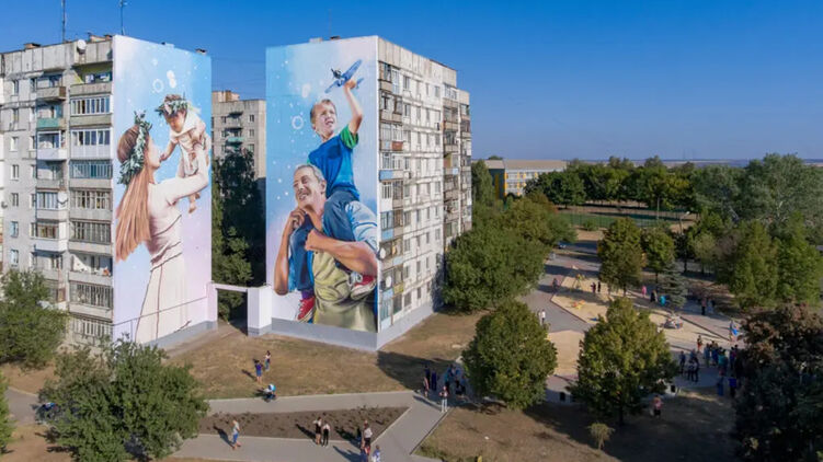 В Бахмуте Донецкой области под обстрелами рухнул дом в западной части города, на котором еще оставался известный мурал - отца и сына, который запускает самолет.