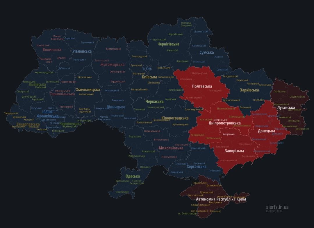 23:33 Воздушная тревога во всех восточных областях.