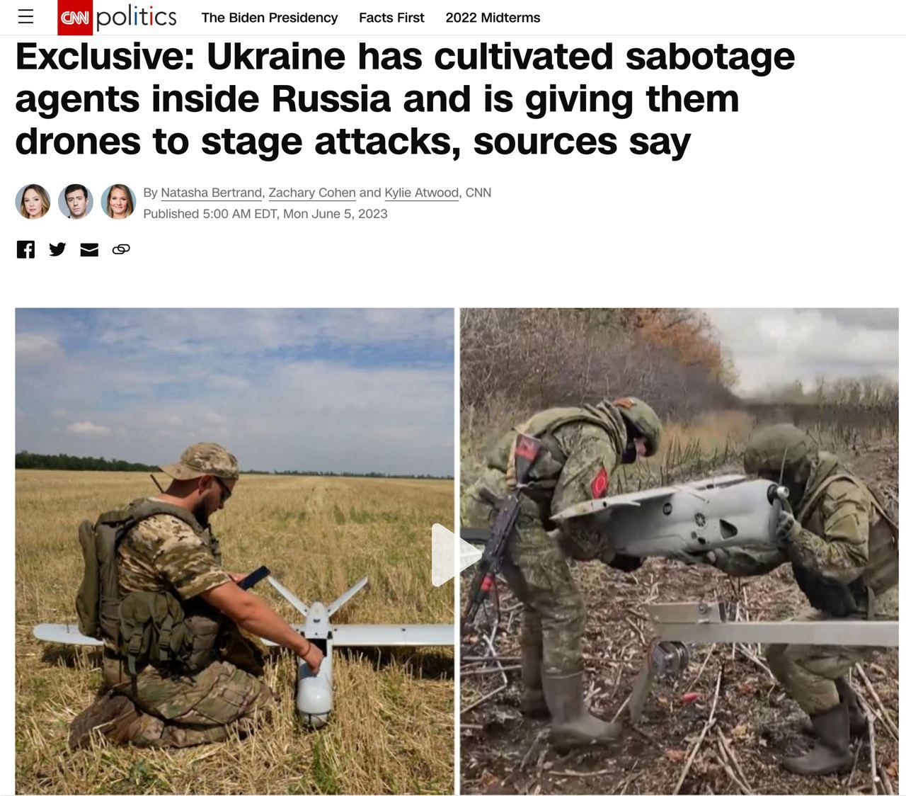 13.20 Украина подготовила на территории России сеть диверсантов, которым передает дроны для совершения атак, сообщают источники CNN, знакомые с разведданными США.