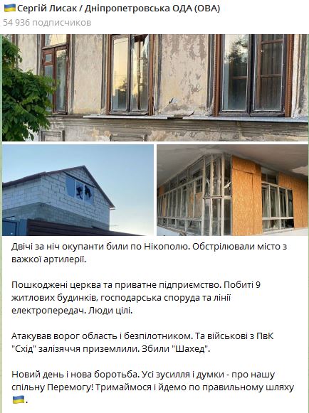 07.15 Ночью россияне дважды обстреляли Никополь в Днепропетровской области.