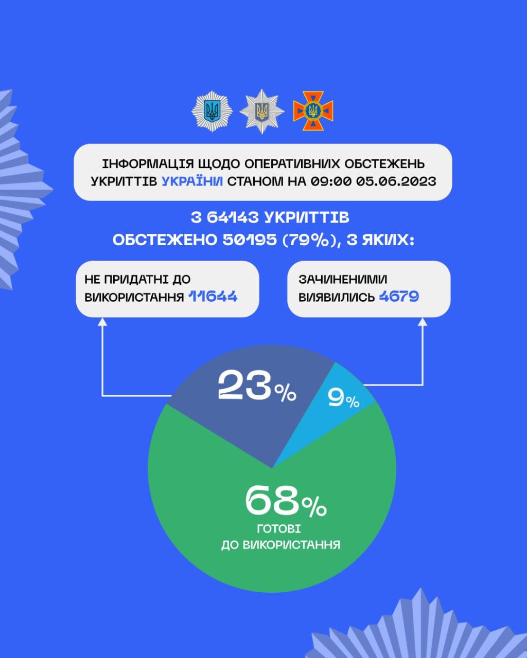 МВД сообщило об их результатах. Пока было обследовано больше 50 тысяч укрытий (79%):