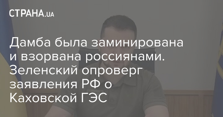 Дамба была заминирована и взорвана россиянами. Зеленский опроверг заявления РФ о Каховской ГЭС